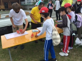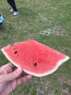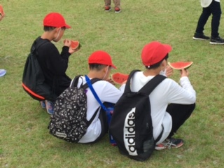 山登りのあとのスイカは最高やなぁ(満足笑顔)