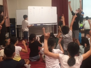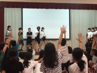 さいごの3つめは「ジェスチャーゲーム」でした。ここでも司会役の子どもたちがみんなを楽しませようと盛り上げました。また、前に出て出場しているジェスチャー役の子どもとクラスの友だちとの連帯感が、どのクラスからも感じられ、約1時間とは思えないほど、楽しい楽しいひとときでした。またひとつ、すてきな思い出ができましたね。