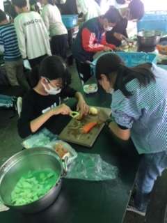 さあ、5年生になって3回目の調理実習!スタートです。まずは野菜を切ります。