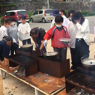 「熱い!煙たい!けれど、これも美味しいカレーのため!」さあ、完成はもうすぐです。
