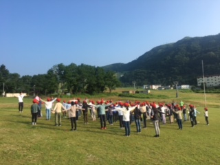 「おはようございます」。係の子たちに合わせて今日も元気にあいさつできました。朝のお話のときに子どもたちにたずねてみると「まだまだハチ高原で過ごしたい」「そろそろ大阪に帰りたいな」という子が、ほぼ半分ずつの様子でした。