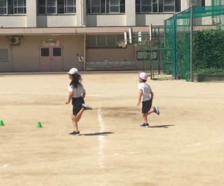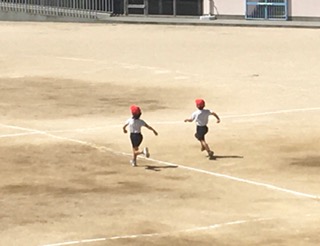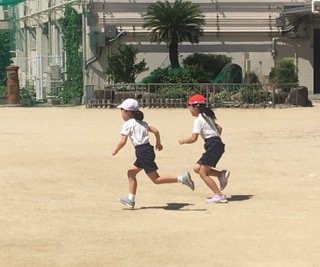 「ドン!」の合図で子どもたちが駆け出します。腕を振って、脚を上げて。ゴールまで、どの子も全力疾走の2年生です。