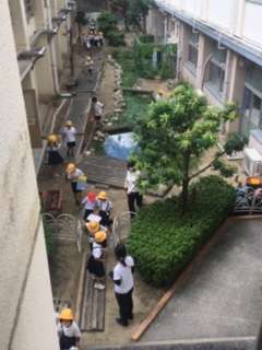 1年生の生活科の時間です。今日はビオトープに入って、秋探しをしていました。