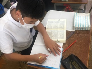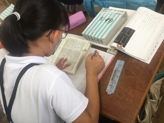 国語辞典を自分の側に置いて、意味のむずかしいことばを調べては、ノートにどんどん書き込んでいました。その様子に「成長してきたなぁ」と担任の先生のことば。それに対し、(当然でしょう)と言わんばかりに自信を持って、次のことばに黙々と取り組んでいく子どもの姿に、やはり「成長」を感じさせられた、そんな一場面でした。