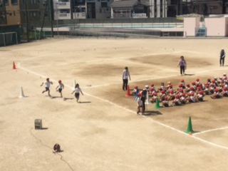 運動場で、1年生がかけっこの練習をしていました。コーナーを曲がって最後の1組がゴールに入ったところで、先生が「はーい、さいごの一人までよく走りましたね」と皆んなに声をかけました。すると、自然と皆んなが拍手。このあたたかさが、育和の子どもたちにはあります。