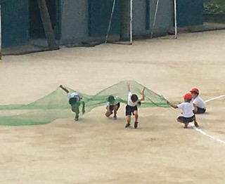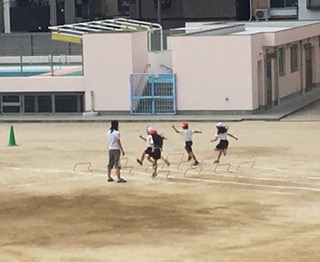「がんばれ〜っ」「いけー!その調子、その調子」思わず歓声が聞かれるなか、3年生が駆け抜けていきます。ミニハードルを越えたり、ネットをくぐったり。真剣に、そして楽しそうに取り組んでいました。