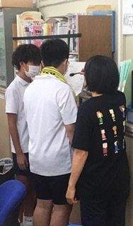 図書館開放がある日には、毎回、その日の図書委員会当番の子どもたちが放送をしに、職員室までやって来ます。本番前に、廊下でちゃんと練習もして、えらいなぁ・・・。そしていざ本番。皆んなによく伝わるように、ゆっくりはっきり話せていました。ちなみに、今日のオススメの本の紹介は「日本の歴史」てした。