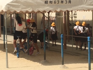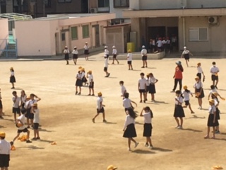 「暑い〜っ(汗)」が飛び交う今日この頃ですが、休み時間中の子どもたちは、暑さなんてどこ吹く風。今日も元気いっぱい太陽のもとで、遊んでいます(もちろん、教室に帰った後の汗拭きや水分補給は欠かすことなく)。また、よく見てみると、テント下の日影を利用して上手に遊んでいる姿もあります。運動会の練習、教室での授業、そして休み時間の遊び等々。今週も気がつけば、もうあと1日です。