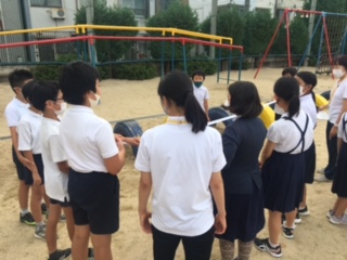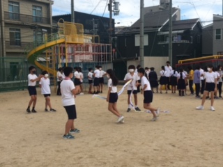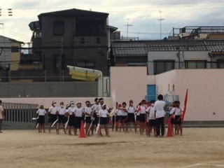 運動場では、ゴール係の子どもたちが、ゴールテープを持って、みんながいかに気持ちよくゴールを駆け抜けることができるか、シュミレーションしながら練習していました。1年生のときって、高さはこれくらいで良いかな?巻いていくのはどうする?などなど。自分の競技以外に、こうして学校全体のためにと活動することで、高学年の子どもたちはさらに成長していきます。