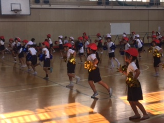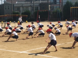 6年生の「どっこいしょ〜どっこいしょ」「どっこいしょ〜どっこいしょ」「ソーラン、ソーラン!」「ソーラン、ソーラン!」の掛け声に力が込もってきました。腰の位置の低さも練習の賜物。そして音楽にのって弾むようにして、いつも楽しげに練習している1年生。