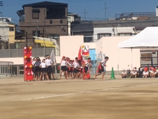 プログラム1番は、応援合戦。毎日夕方遅くまでがんばってきた成果を、みんなのことを応援する気持ちを、今、発揮します!