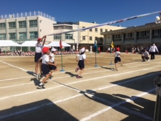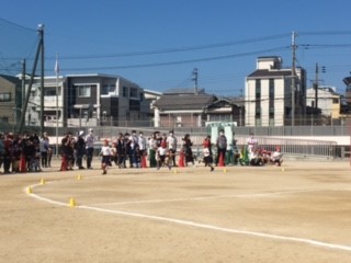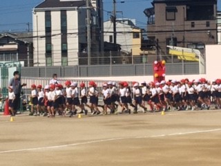 プログラム3番は、2年「全力でかけぬけよう」です。にこにこ笑顔で入場してきた2年生。どの子も、自分の全力を出すことめざして、がんばりました。