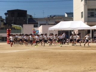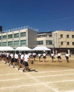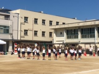 プログラム12番は3年団体演技「かがやけ!Rainbow!」です。金色銀色にかがやくポンポンを持って、入場門から元気に飛び出す3年生。一人一人の踊りはもちろん、特に放射状になってからの隊形移動は難しかったと思うのですが、見事に直線をキープしながら完成させていました。「こっちだよ」とそっと教え合っていたのも、何とも心優しいワンシーンでしたね。
