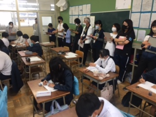 約1ヶ月の間、育和小に学びに来られた教育実習生の方のさいごの授業がありました。教科は算数。子どもたちも、先生が何をいわんとしているのか一生懸命聞いて、発表もがんばっていました。授業後、たくさんの先生方からアドバイスもいただき、本当にありがとうございました、とのこと。この経験をぜひ次のステップにつなげていってくださいね。