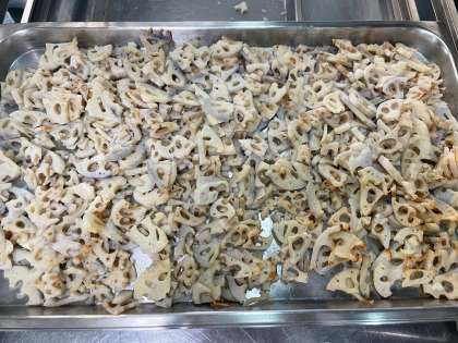 ジューシーとは沖縄風の炊き込みご飯のことを言います。給食では具とご飯をまぜて食べます。もずくが苦手な児童も豚肉とこんぶのうま味でおいしく食べていました。れんこんもシャキシャキと歯ごたえがあるように切ってもらったので好評でした。