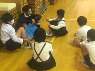 歳下の子どもたちにとって、6年生のお姉さん、お兄さんと過ごせる時間は、お楽しみのひととき。「やった!集会たのしみ」「どうして?」「だって6年生、やさしいもん!」何ともうれしいことばですね。今日の集会でも、集会委員会の子どもたちが皆んなを楽しませようと、前に出てがんばっていました。
