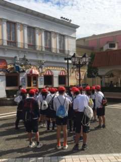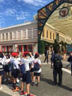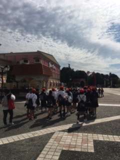 こちらは青い空と白い雲。気温は23度と、上着も脱いで、絶好の修学旅行日和です。