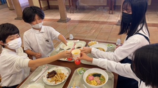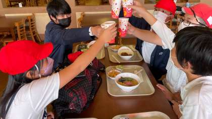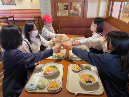 カレーライス、ラーメン、ポテトフライなどなど。みんな、自分の好きなメニューを頼んで美味しそうです。