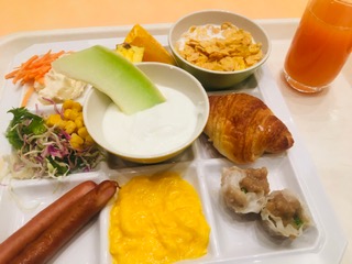今朝は、クロワッサン、シュウマイ、ソーセージ、コーンフレークなどが、人気だったようです。おかわりしている子もたくさんいました。よかったですね。