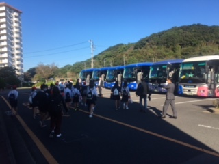 宿舎を出発する前にクラスごとに写真を撮りました。先生から「パルケのときと、同じ並び方やで」と言われると、それだけで、自分たちで並んで準備できる子どもたち。素晴らしいです。
