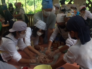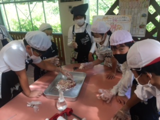 次は、にゃんこの手のポーズで、やさしく混ぜ混ぜ、です。