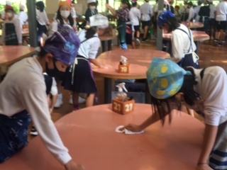 後片付けです。使った器具はしっかり洗って、机もピカピカに・・・