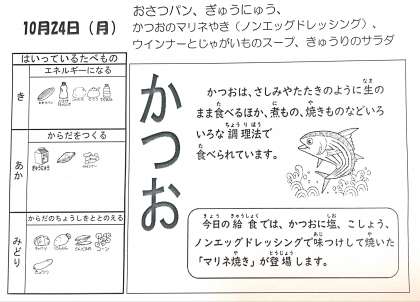 かつおにノンエッグドレッシングで下味をつけ、焼き物機で焼いています。