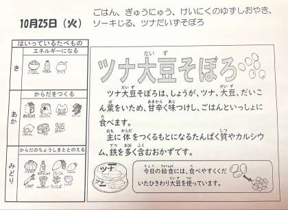 ツナ大豆そぼろはひきわり大豆を使っています。