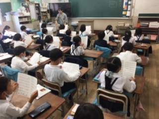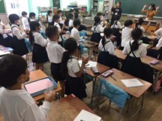 1年生の教室から子どもたちの楽しそうな歌声が、聴こえてきました。大好きな歌だったのか、譜面の歌詞を見ながら肩も揺らしながらみんなノリノリです。また、隣のクラスでは、ペットボトルとドングリでつくった手づくりのマラカスで、「チャチャチャ」とリズムに合わせて振っています。みんなで揃うと、なんだか気持ちがいいですね。