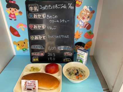 「きのこのクリームシチュー」のきのこは、しめじ、マッシュルーム、