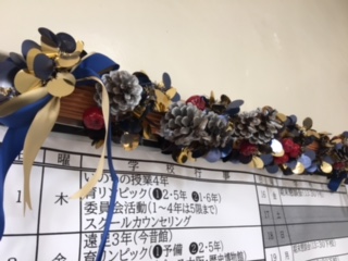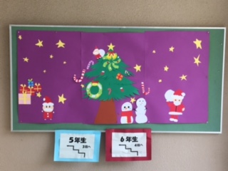12月も早いものでもう6日。朝晩、日に日に寒くなってきました。少し前のホームページ記事にあった「冬景色」。実際に生で見ると、そのあたたかさがより伝わってきます。なかよし学級の子どもたちが持つ心のやさしさがそうさせているのかな、と思いながら眺めていました。先日開催した「育和小学校作品展」は盛況のうちに終わりましたが、学校では、廊下や階段などここあそこで、子どもたちの作品が掲示されています。そして玄関には職員の皆さんがつくってくれた12月の飾りたち。朝登校してきた子どもたち、帰る時の子どもたちの心のどこかに、「ぽっ」とあたたかな気持ちが生まれてくれたらうれしいな、と思っています。