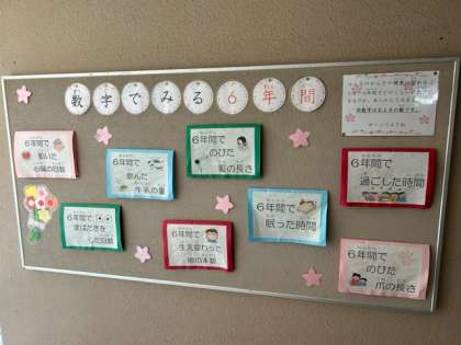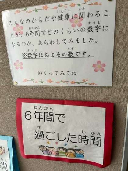 保健室前の掲示板に、養護教諭の先生がつくってくれました。子どもたちも、私たちも、めくってみては、「そんなにたくさん!?」と驚き!でした。