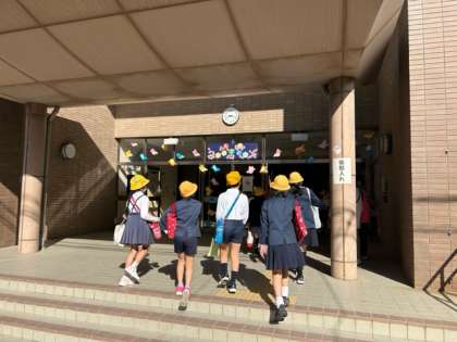 さあ、今日から新学期の始まりです。久しぶりにくぐる育和小学校の正門。みんなひとつずつ学年もあがりました。はりきっていきましょう!