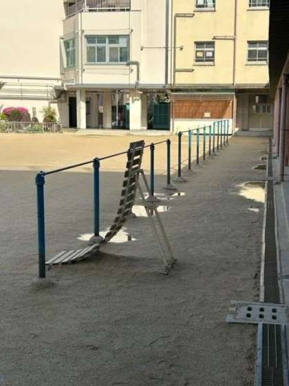今日は、昨日の雨で朝は運動場が使えませんでした。