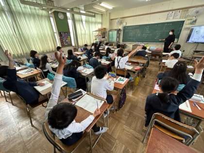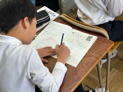 5年生の算数の時間です。先生の話を聞いたり、友だちの発表を聞きながら、どんどん書いています。子どもたちのノート見ると、前の時間に習ったことも丁寧にまとめてあるので、後から振り返ったときも、とっても見やすいです。「わかりやすくまとめてるねぇ」と感心して話しかけると「それほどでもないよ」と、謙遜していました。すごいね、5年生!