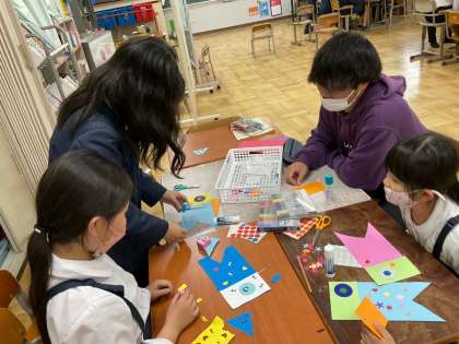 画用紙を組み合わせてこいのぼりを作ったり、型抜きパンチを使って好きな形の模様を貼り付けたりしました。