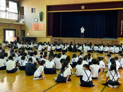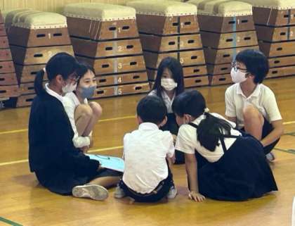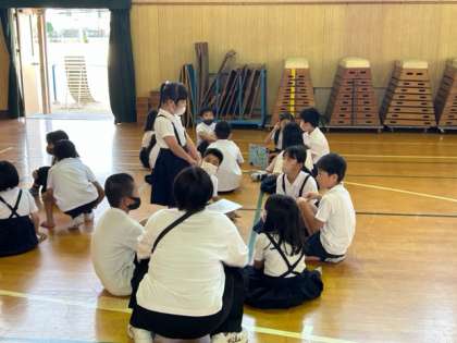 育和小学校には、わくわく集会というのがあって、異学年交流をしています。グループは、1・3・6年生、2・4・5年生。1回めは、全体で集まったあと、グループに分かれて自己紹介からスタートしました。順番が回ってくると、立って自己紹介。すると、どこからともなく拍手が起こっていました。いい感じです。最後はしりとりで遊んで「また、今度ね」と解散しました。これからの朝の集会、たのしみですね。