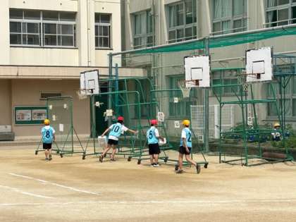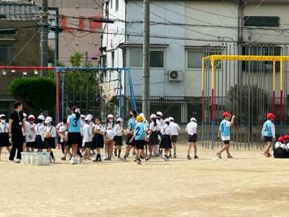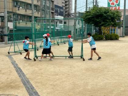 みんなが楽しく運動できるように、と願ってスタートした「投げリンピック」。そこには、運動委員会の子どもたちが、裏方さんとしてのがんばりがありました。準備や後片付け、また活動中には、せっせとロケットを運んだり、コロコロ転がった紅白の玉を追いかけ元に戻したり。終わったあとは、「運動委員会、ありがとうー!」の声が周りから響いています。