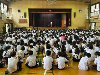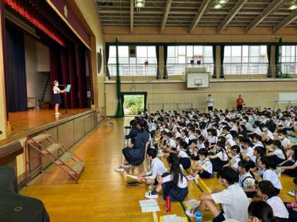 「昨日、楽しみすぎて、あんまり寝れんかった!」「私はめちゃ早起きし過ぎちゃった!早く始まらんかなぁ」朝からにこにこハイテンションの子どもたち。いよいよフェスティバル本番です。開会式で、代表の子どもたちの司会やあいさつも、バッチリ!でした。さあ、いよいよスタートです。