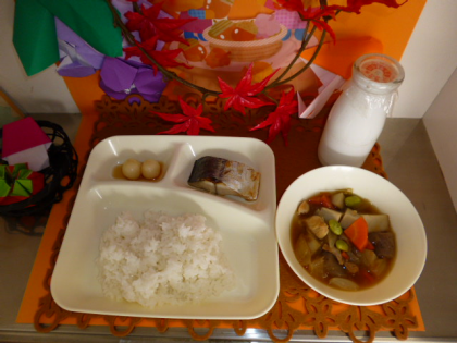 9月25日の給食は、ご飯・さごしのしょうゆだれかけ・さといもとこんにゃくの煮もの・みたらしだんご・牛乳でした。