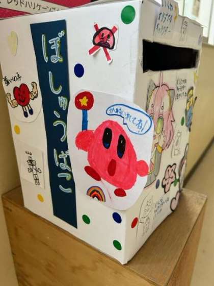 代表委員会の子どもたちが、今、140周年記念キャラクターのアイデア募集を呼びかけてくれています。中には、何日もかけて考えたんだよ、という子も。子どもたちからどんなアイデアが飛び出してくるのか、今から楽しみですね。(この募集ボックスもなかなかの力作!です。とっても楽しそうです)