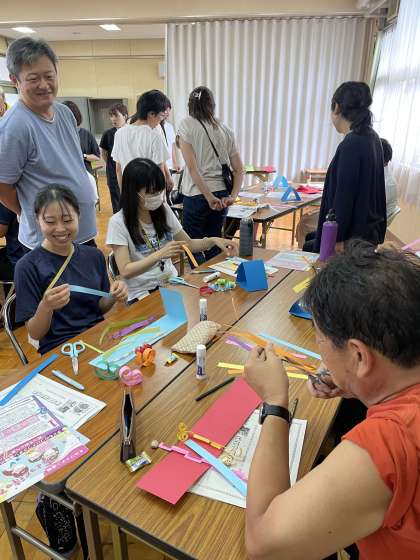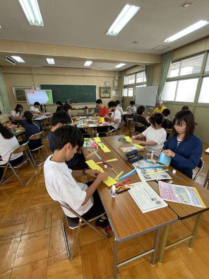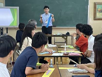 夏休みがはじまりました。低学年の子が「夏休みは先生はどうしてるの?」と尋ねてくれたので少しだけ紹介します。先生たちも勉強(研修)をしています。7月20日(木)は、図画工作の実技研修をしました。なんと今回の講師は校長先生です。色画用紙やアルミホイルを使って、形や色、イメージを膨らませ、一人一人表現活動をしました。また、お互いの作品を鑑賞し、作品のよさや美しさ、表し方等について考え、発想や構想し、作品に対する見方や感じ方を深めました。多くの気づきや発見があり、お互いに高め合える研修でした。また2学期にみなさんと楽しい図画工作の学習ができるのを楽しみにしています。