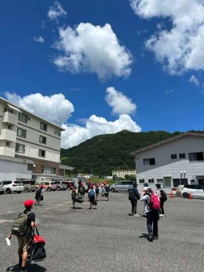 「やったー!着いた〜」宿舎に到着しました。みんな元気です。