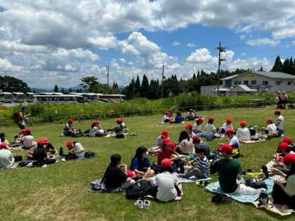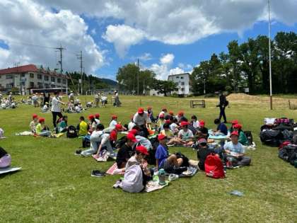 まずは腹ごしらえ。お待ちかねのお弁当タイムです。グループごとに、みんなで声を揃えて、「いただきまーす」
