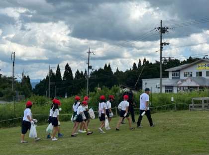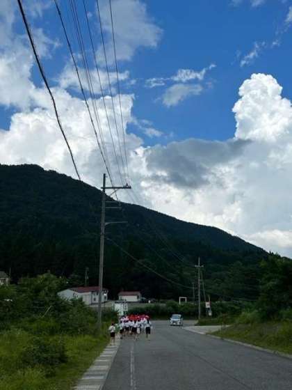 避難訓練も終わり、少し予定を変更して、今から沢登りに移動です。「魚つかみ、たのしみ〜」「けっこう、大きいのかなぁ」ワクワク会話をしながら向かってます。