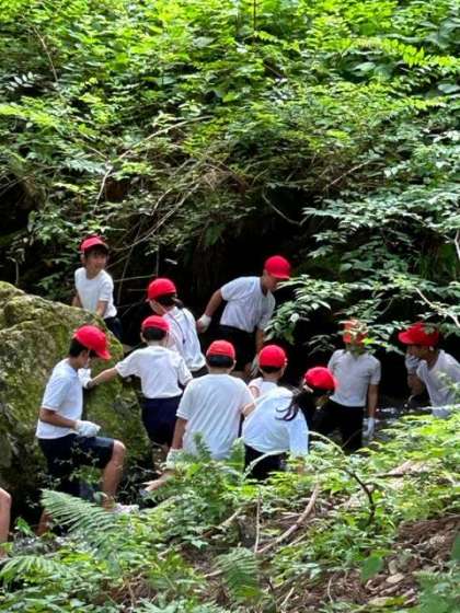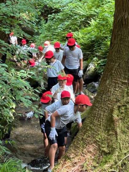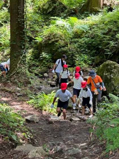 「おーぃ!」「めっちゃ冷たーい!」「楽し過ぎる!」笑顔の子どもたちが登ってきました。「もう1回行ってもいいですか?」「こんなん、何回やっても、楽しいですから〜」自然のなかで、大興奮の子どもたちです。