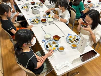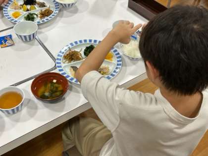 「いろんな種類のおかずがあるねぇ」「山登るから、今日はおかわりしよっかな」
