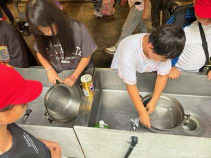 借りたときより、美しくしてお返しする・・・いつもお家でしてもらっていることを、今日は自分たちで、がんばっています。