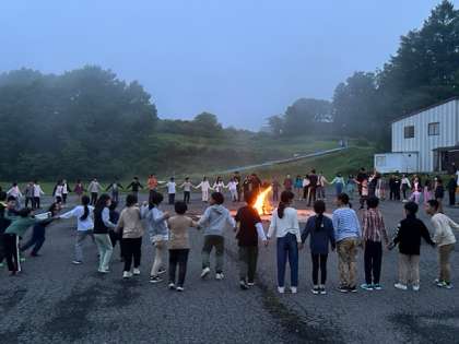 どのスタンツゲームも、みんなで盛り上げ、楽しい時間。あたりも少しずつ暗くなってきました。