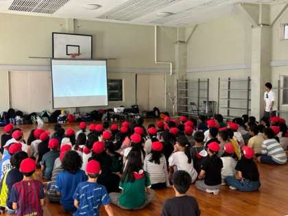 ふたつめのサプライズは、この2日間の楽しかった数々のシーンを集めた動画集を、閉舎式の前に皆んなで見たことです。実はこのために先生方が、たくさんのショートムービーを撮影。隙間の時間に、それらを集めてすぐに編集。そして最終日の今日、さっそくの上演となりました。このスピード感、そして子どもたちの喜ぶ顔を思って準備してくれた時間と気持ちに、うれしさいっぱいです。笑い声あり、じっと見つめる姿や共感し合う様子あり、これまたすてきな時間と空間になりました。